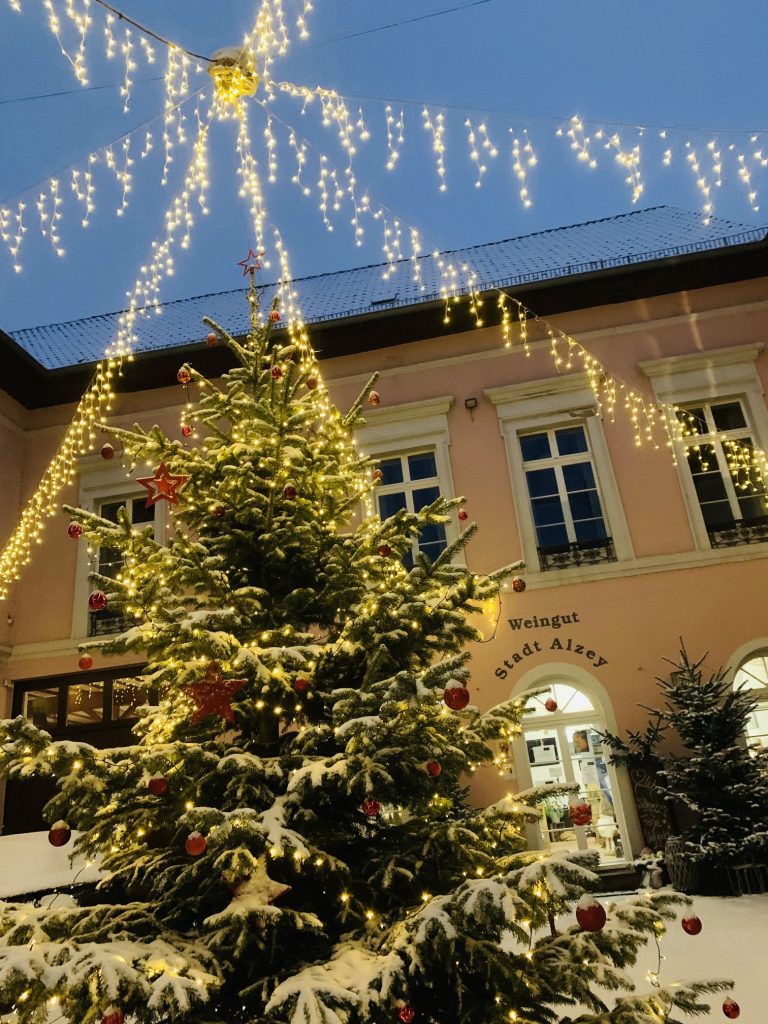 Wenn der Duft von Glühwein und Tannenzweigen über den Fischmarkt zieht, wird es in Alzey richtig weihnachtlich! Im kleinen Weihnachtswald rund um den Glühweinpavillon er- leben Sie die Adventszeit von ihrer schönsten Seite – stimmungsvoll, gemütlich und genussvoll.